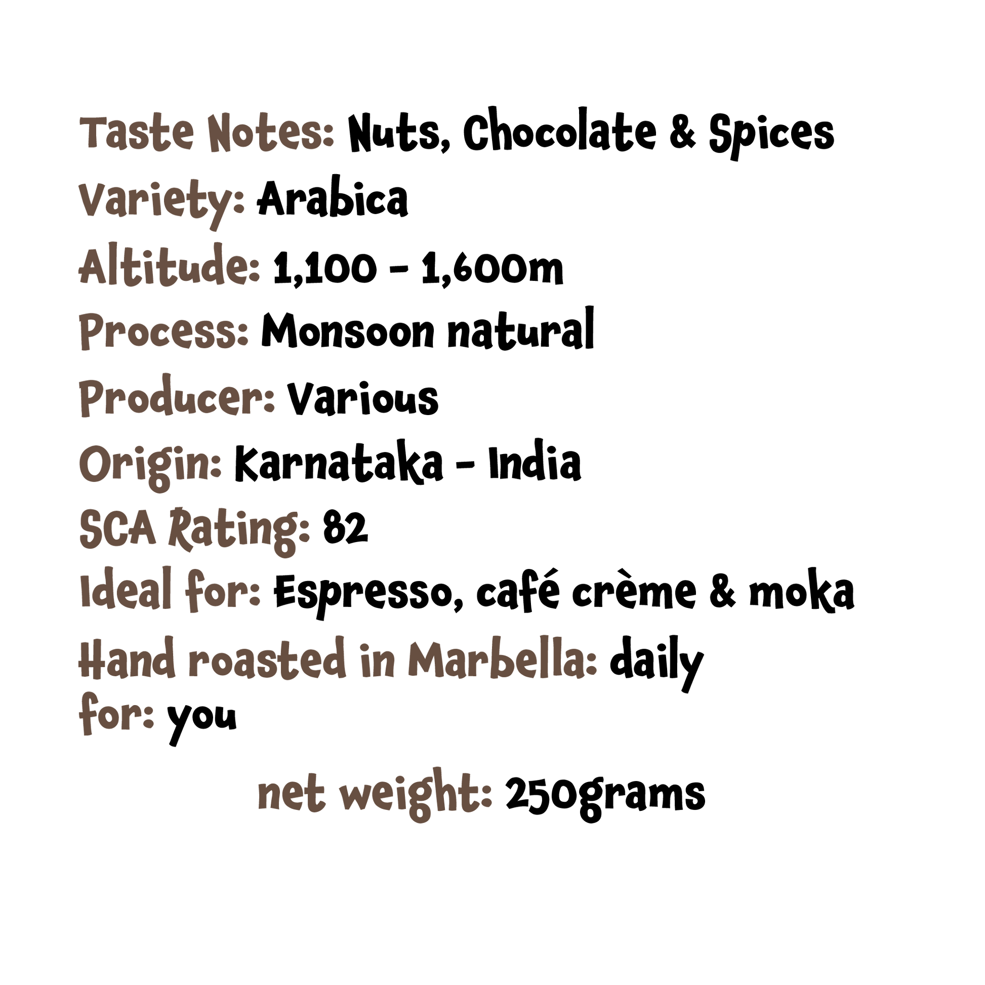 Click here for more info on the origin and how this beautiful bean is processed....